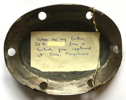 TURKISH FIELD GUN PLATE - MESOPOTAMIA - BRITISH VET WW1 BRING BACK
