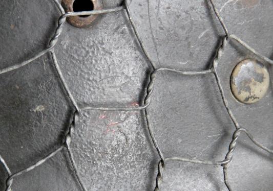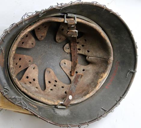 Dry stored so not a lot of rust between the shell and wire and interaction is less common with galvanised wire, that said, the basket is most definitely original to the helmet which came direct from the vets family 12 years ago and was bought by me from a big shooter on WAF ( name to buyer ).