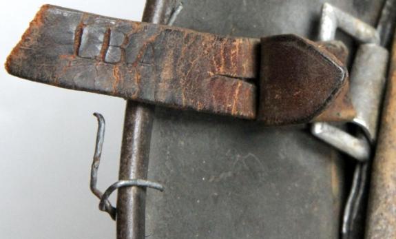 The short part of the brown chinstrap has a clear " L.B.A. " stamping.