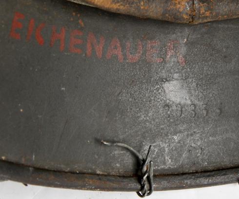 This configures exactly with the Brian Ice helmet code book . Double banded alu. liner band , d/d Luft , ( both 1st and 2nd pattern eagles ) and recorded as having left the factory in 1938