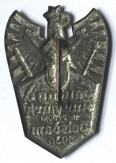Scarce . Silvered finish. Weimar type eagle with swastika on top. Large size, 5.2 cm x 3.6 cm. Nice detail. V.G.C.