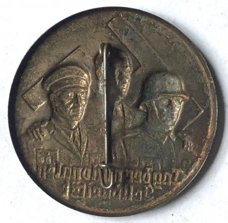 Nice toned brass. Detail in relief. Good soldier and civvy figures over Swastika. V.G.C.