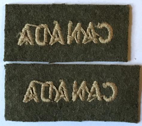 Nice matched pair of embroidered cloth shoulder titles. No moth or damage. Unissued condition.