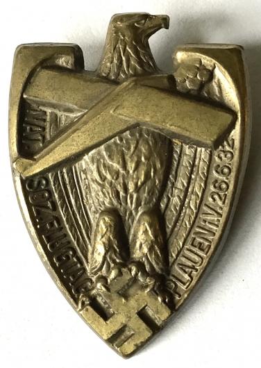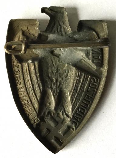Rare very early NSDAP related Air Day rally badge. Die struck toned brass, Features glider and swas over an egle with folded wings. V.G.C.