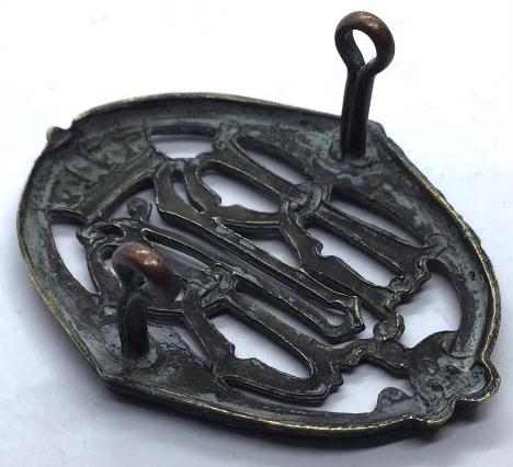 As per the normal badge but with extra long lugs presumably for a feather bonnet so likely for a piper. Blackened brass. Old polish residue. V.G.C.
