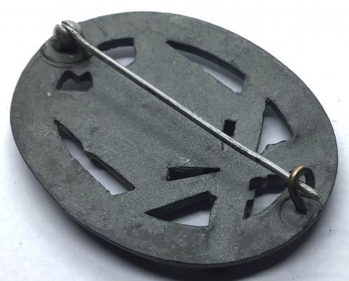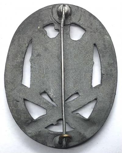 Mid to late war zinc example with the remains of the silver finish. Good detail. Original ball hinge and hook arrangement. American vets bring back and straight out the footlocker. V.G.C.
