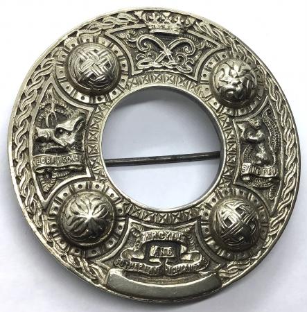 ARGYLL & SUTHERLAND HIGHLANDERS VOLUNTEERS PIPERS BLANK SCROLL PLAID BROOCH