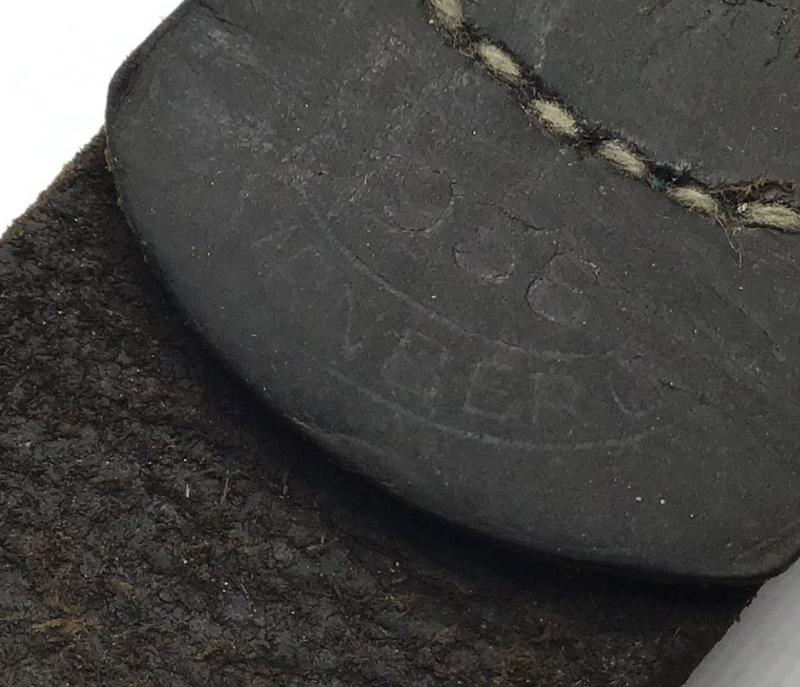 Leather tang with faint Nurmberg maker details, 1938 date and Luftwaffe LBA stamp.