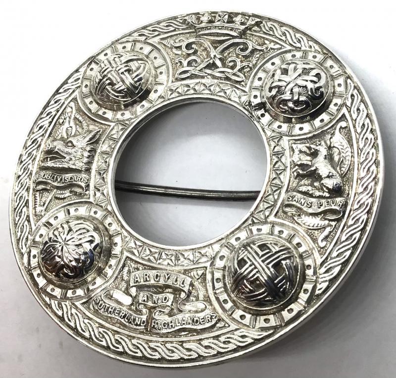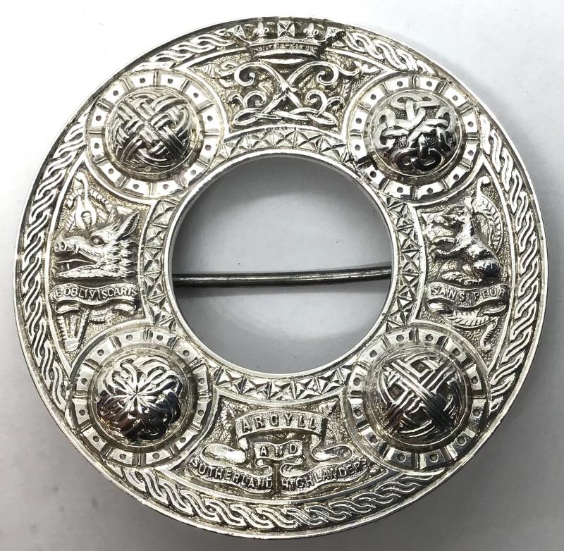 VICTORIAN ARGYLL & SUTHERLAND HIGHLANDERS 1881 BIRMINGHAM H/M SILVER PLAID BROOCH
