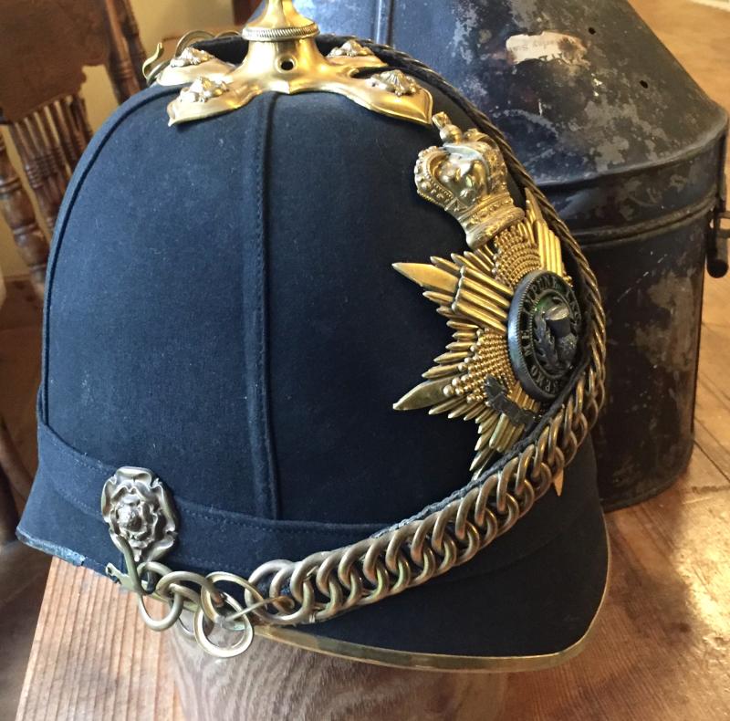 Comprises beautiful officers blue cloth Home Service helmet with rare, sought after gilded helmet plate.