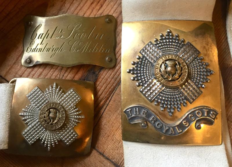 VICTORIAN - 3RD ROYAL SCOTS OFFICERS HELMET & CROSS BELT & WAIST - ATTRIBUTED ...