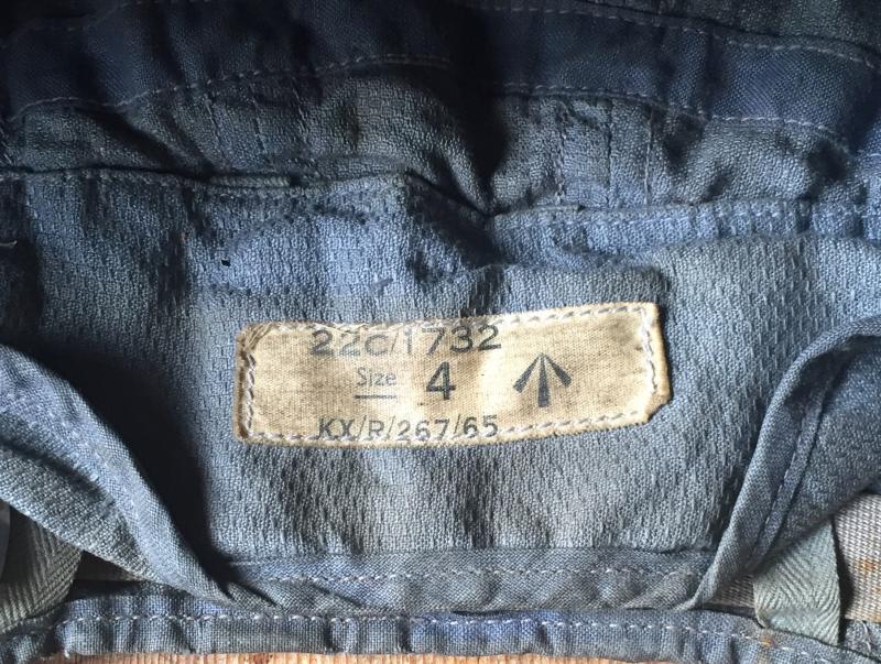 The cloth inner helmet for wear with the bone dome is a large size and in good condition. Label with " 22C/1732 -Size 4 - KX/R/267/65 and WD arrow.