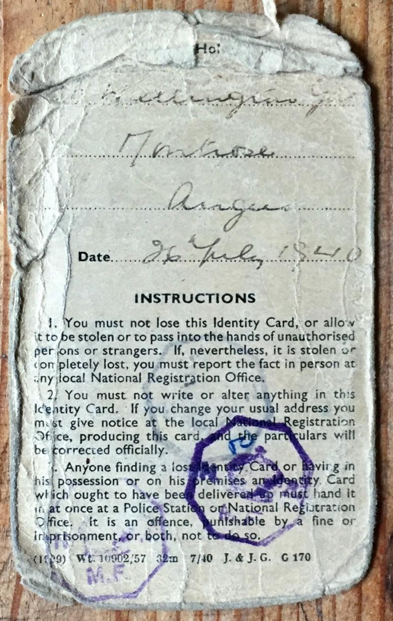 WW2 FORFAR POLICE NATIONAL REGISTRATION IDENTITY CARD