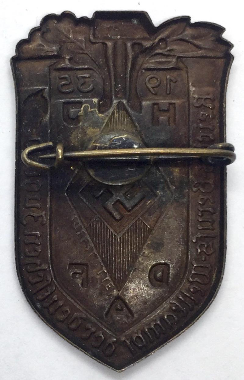 GERMAN 3RD REICH HITLER YOUTH DAF 1935 COMPETITION DAY BADGE