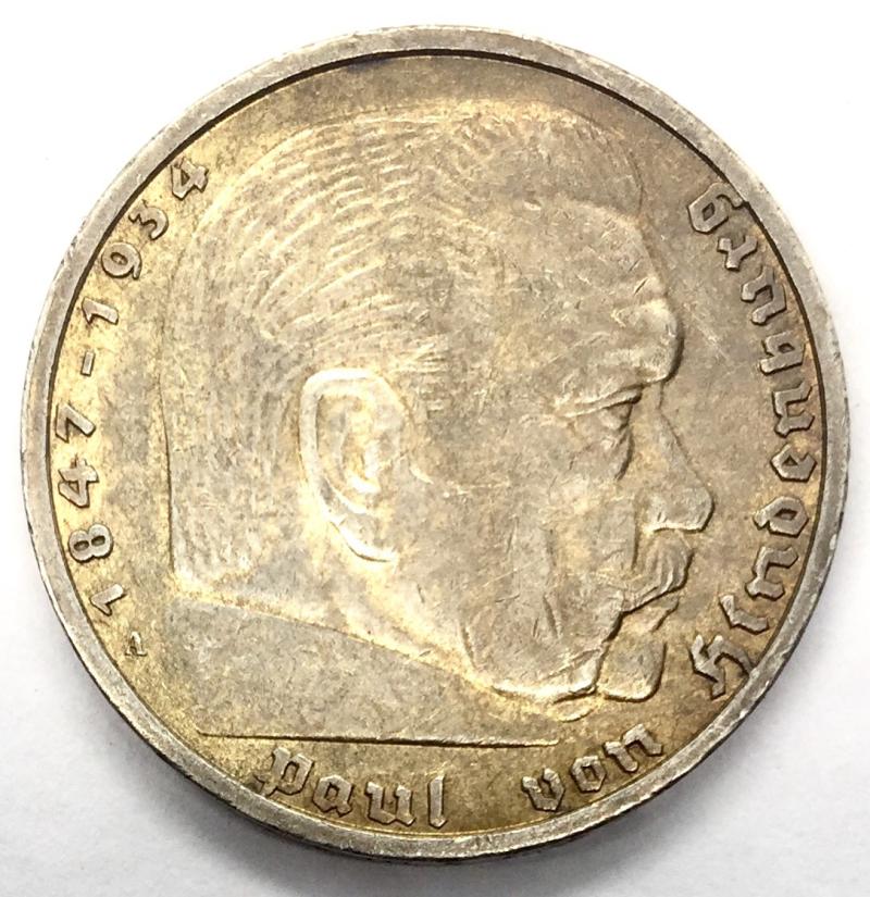 GERMAN 3RD REICH 1938 DTD. 5 MARK SILVER COIN