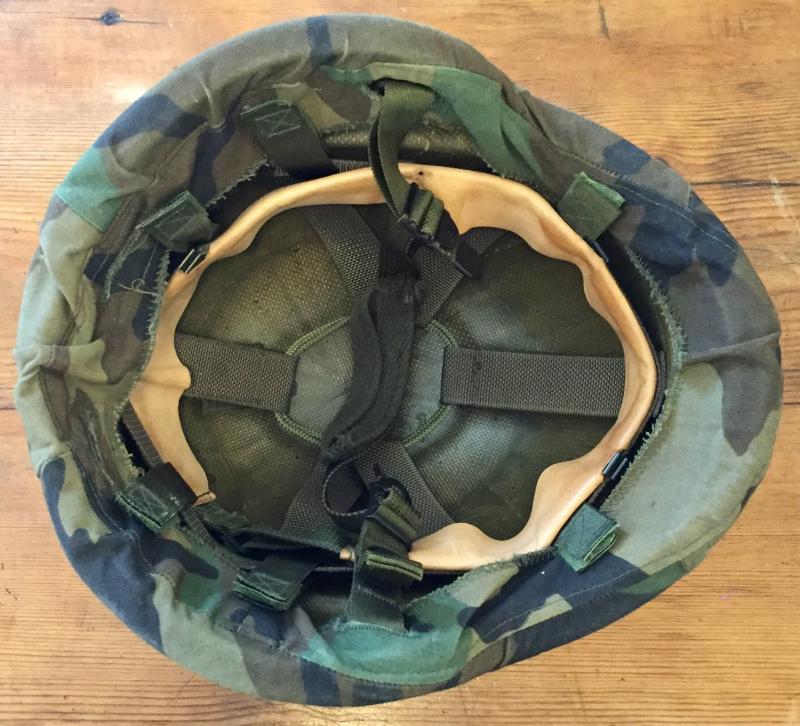 Iconic pattern American kevlar helmet known as the "Fritz" helmet due to it's similarity in shape to the German WW2 stahlhelm.