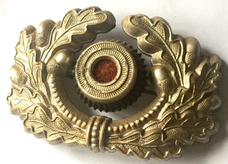 Metal cap cockade and roundel for the visor cap. D.R.G.M. mkd. Both fixing pins present. Nicely age toned. Early example. V.G.C.