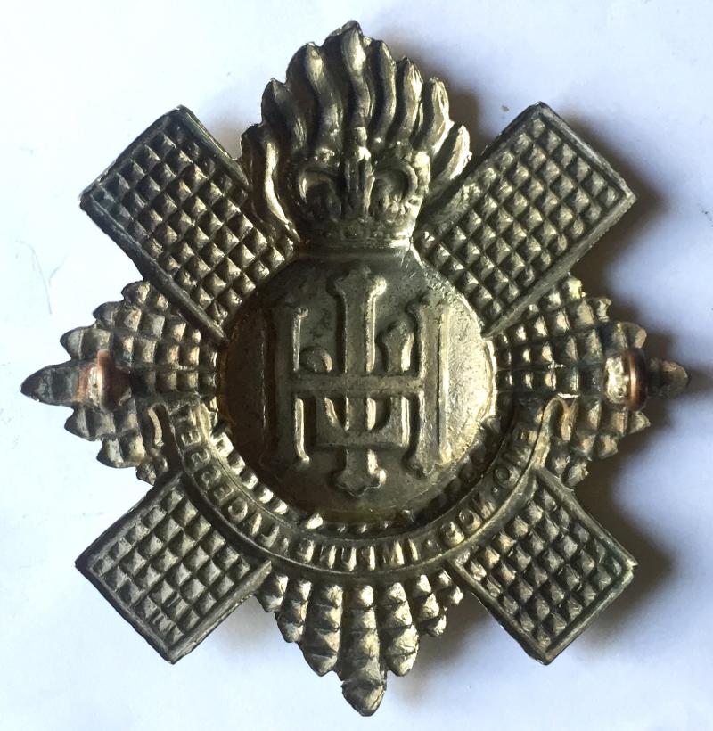 A now very hard to come by badge. Early , Post 52.White metal not anodised. Some polishing to high spots but nevertheless a good example. Worn by Regimental pipers only. V.G.C.