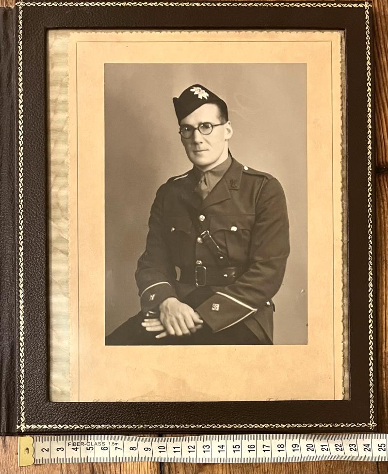 WW1 BLACK WATCH OFFICER CABINET PHOTO IN LEATHER FRAME