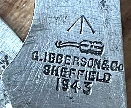 Good example by scarcer maker G. Ibberson & Co. Sheffield. 1943 date and their violin ? logo and W.D. arrow. No springing. Parts retain their bright finish. Blade with a couple of dings . V.G.C.