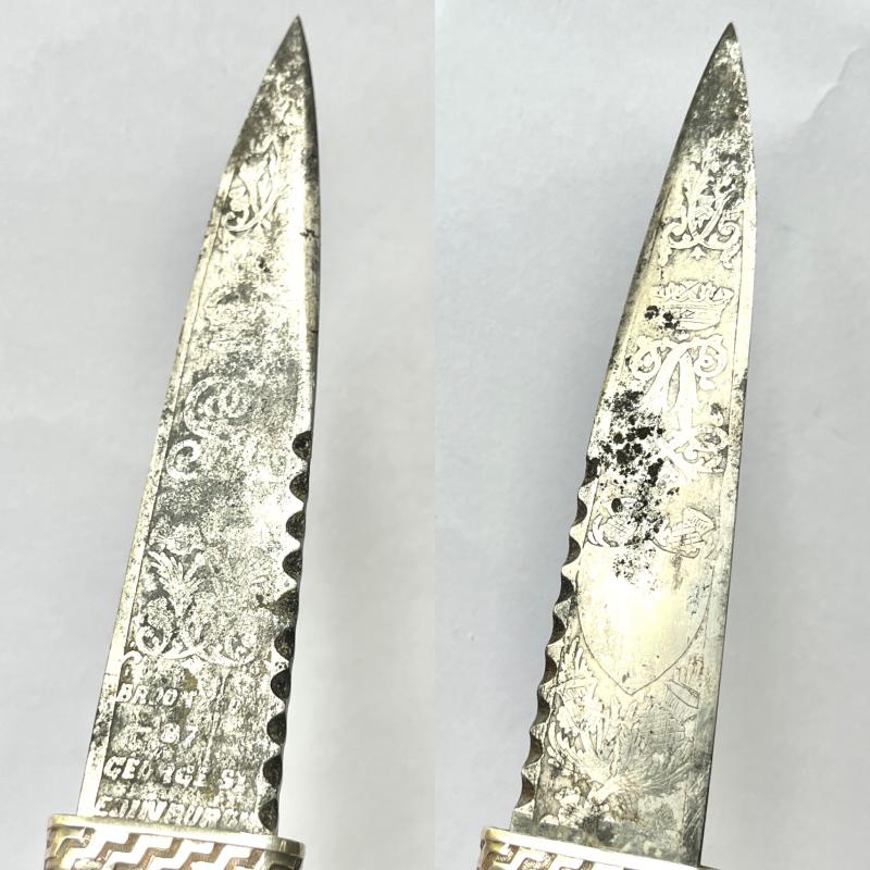 Edinburgh silver hallmarks for 1923, also with scarce acid etched Regimental blade.