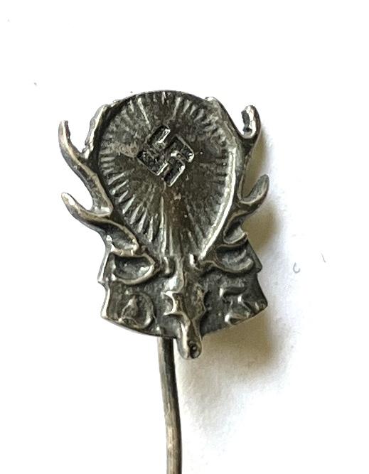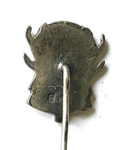 Nice stick pin with age toning . Sharp detail. Rear has marking " 8 ". Non knurled pin which has seen some use as it has some bending. V.G.C.