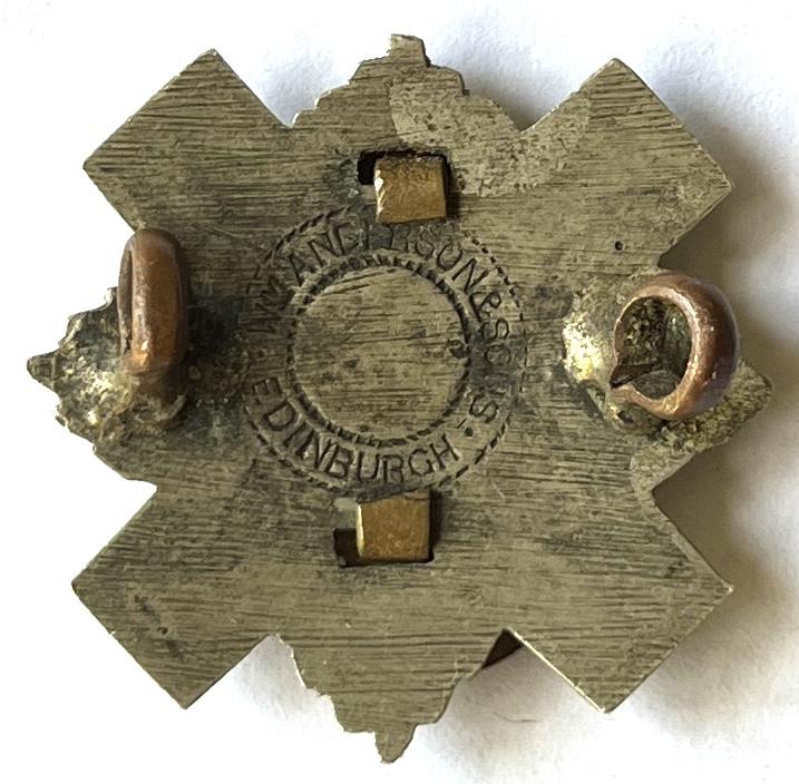 Nice officers bi metal collar by Anderson of Edinburgh . Nickel silver star with gilded brass. 2 piece construction. One lug a bit bent but scarce piece. V.G.C.