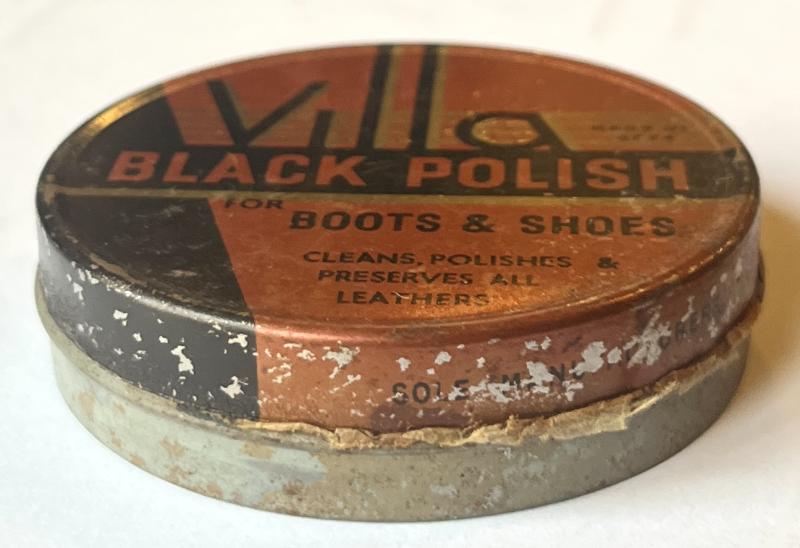 One of the various makes of black boot polish as issued to British troops in WW2. Has the contents but I have'nt opened it. Tin has it's paint and little rust. Rare. V.G.C.