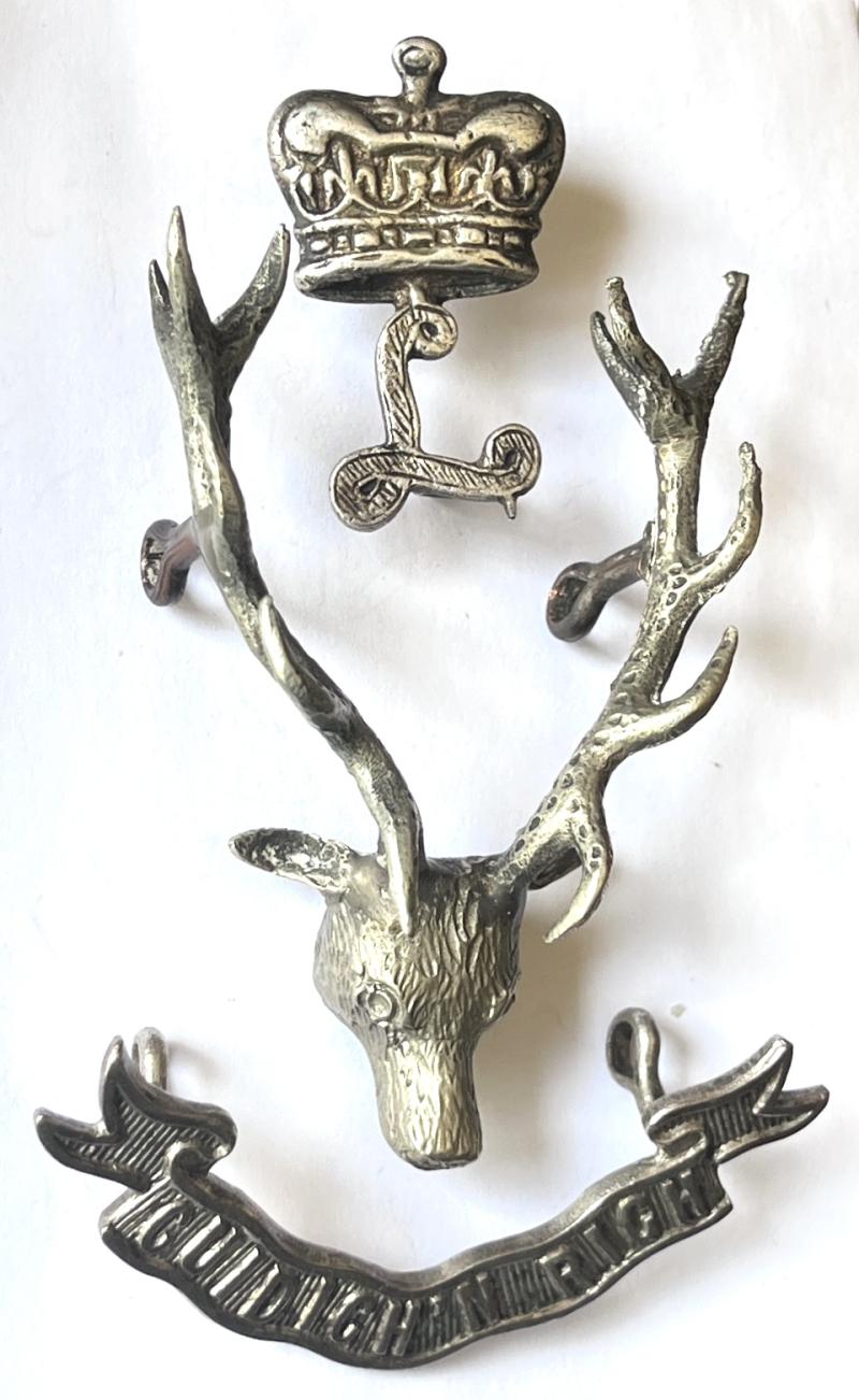 Top piece with Golphic crown and Princess Louise " L ".Bottom scroll with correct Gaelic motto . Well detailed stags head.