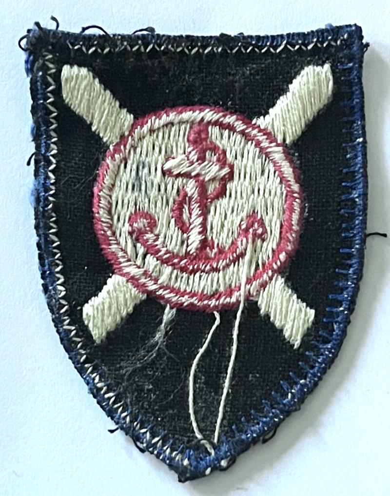 Rare formation sleeve patch for the " Beach Commandos " Near mint. Embroidered on blue printed background, from a former officers estate. Watch my future sales for the unit flag. Scarce