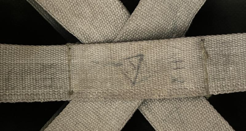 Jihm property mark to webbing crown straps. , made in Korea for Iraq.