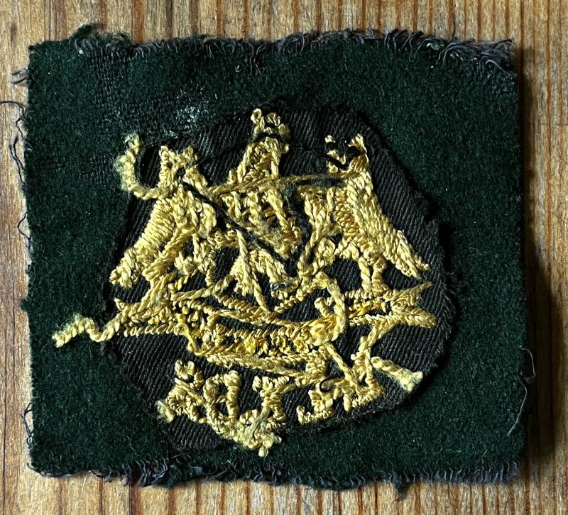 Rifle green wool backing with gold embroidered cap badge device and " LEEDS " underneath.