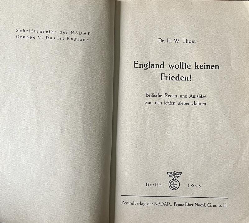 WW2 GERMAN BOOK - ENGLAND DID NOT WANT PEACE ( ENGLAND WOLLTE KEINEN FRIEDEN ).