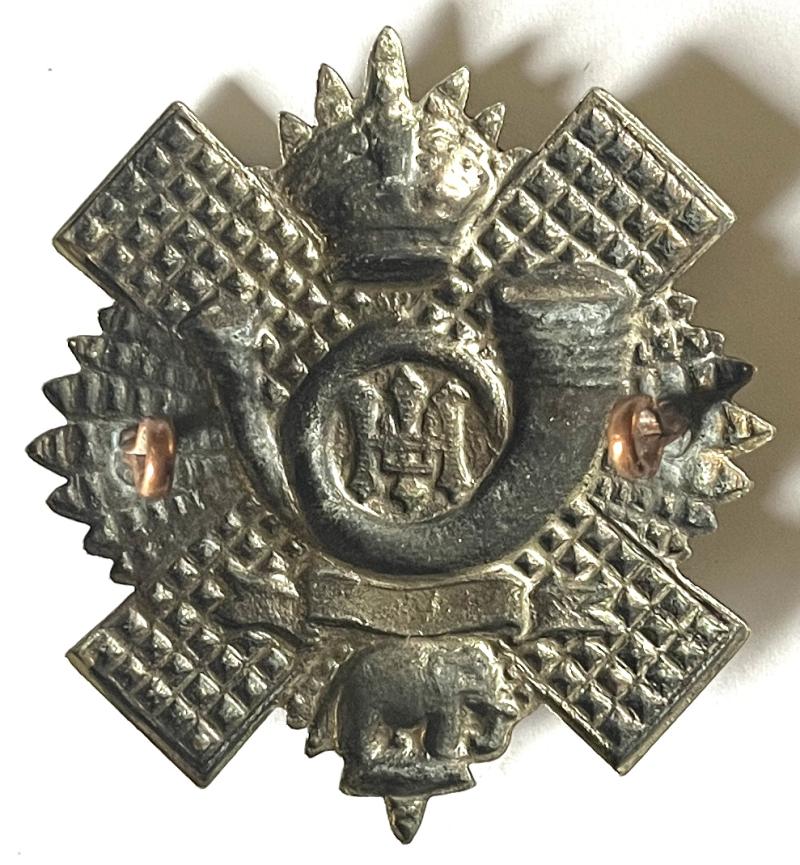 Territorial example with a blank scroll. As worn by 5th ,6th,7th, & 8th Territorial Battalions W/m. QVC crown. Nice toning, slight polishing to the high points of the crown. Scarce.