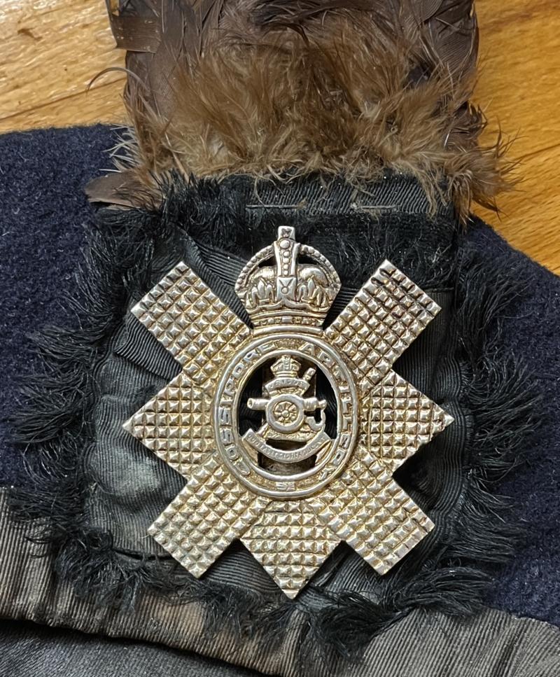 WW1 - COSSIPORE ARTILLERY - PIPERS BONNET C/W BADGE & COCK FEATHER - RARE - DUNDEE