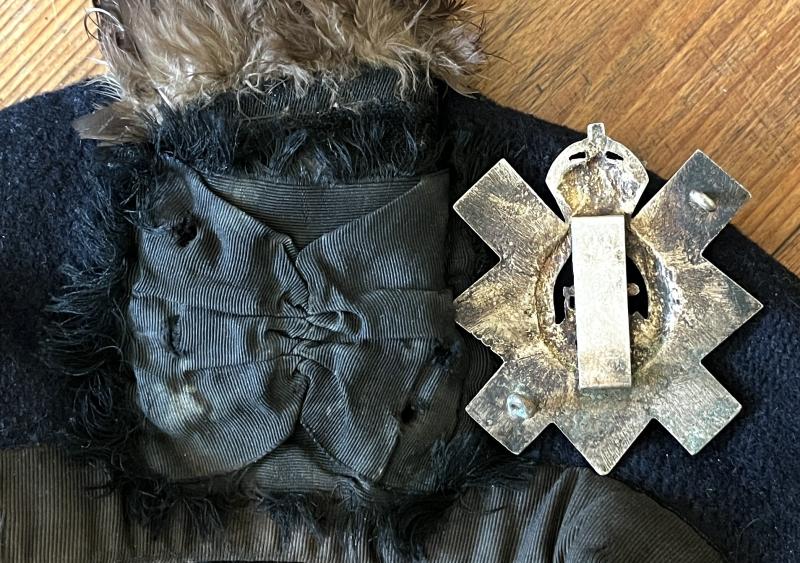 C/W it's original to it rare real Black Cock feather behind the badge, this on it's own a very hard to find item especially in this good condition, most being rather sorry looking on the odd occasion I come across them.