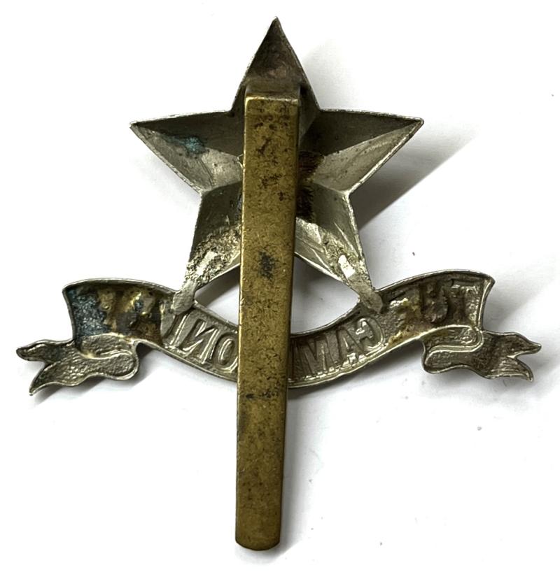 As per a pipers badge but with a long slider instead of lugs and in a smaller size than the Pipers. badge.