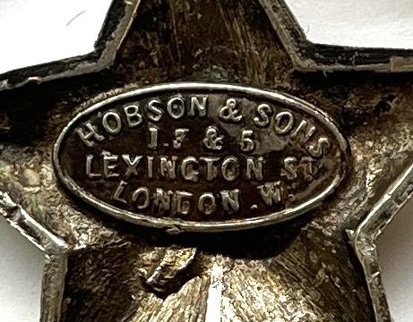 Oval ,raised seperately applied tablet to the back with , " Hobson & Sons - 1.3 & 5 Lexington St. - London .W.".
