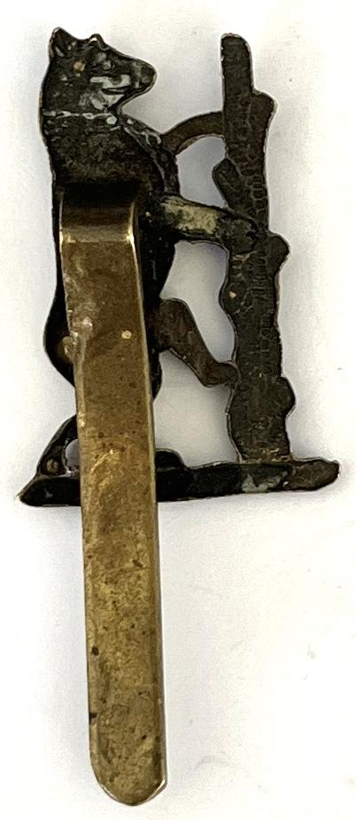Nice toned example. Slider back. Well detailed. Brass. Old polish residue to back. No rubbing or damage. Bear and Ragged Staff. V.G.C.