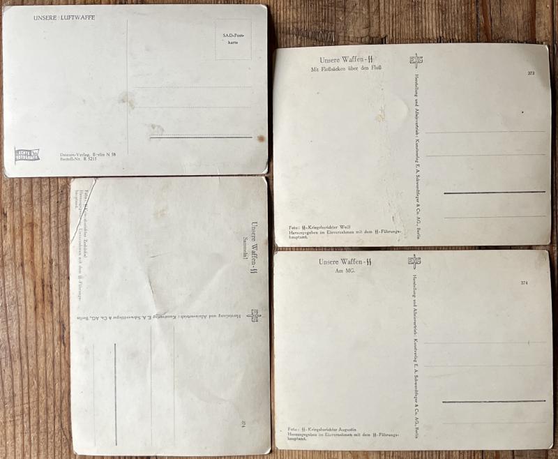 Three rare 100% original Waffen SS postcards from the series, " Unsere Waffen-SS " published by Kunstverlag E.A.Schwerdtfeger in Berlin during the Third Reich.