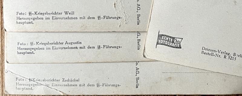 The images were taken in the field by SS front line photographers (Kriegsberichter) and every postcard had the name of the photographer on the back.