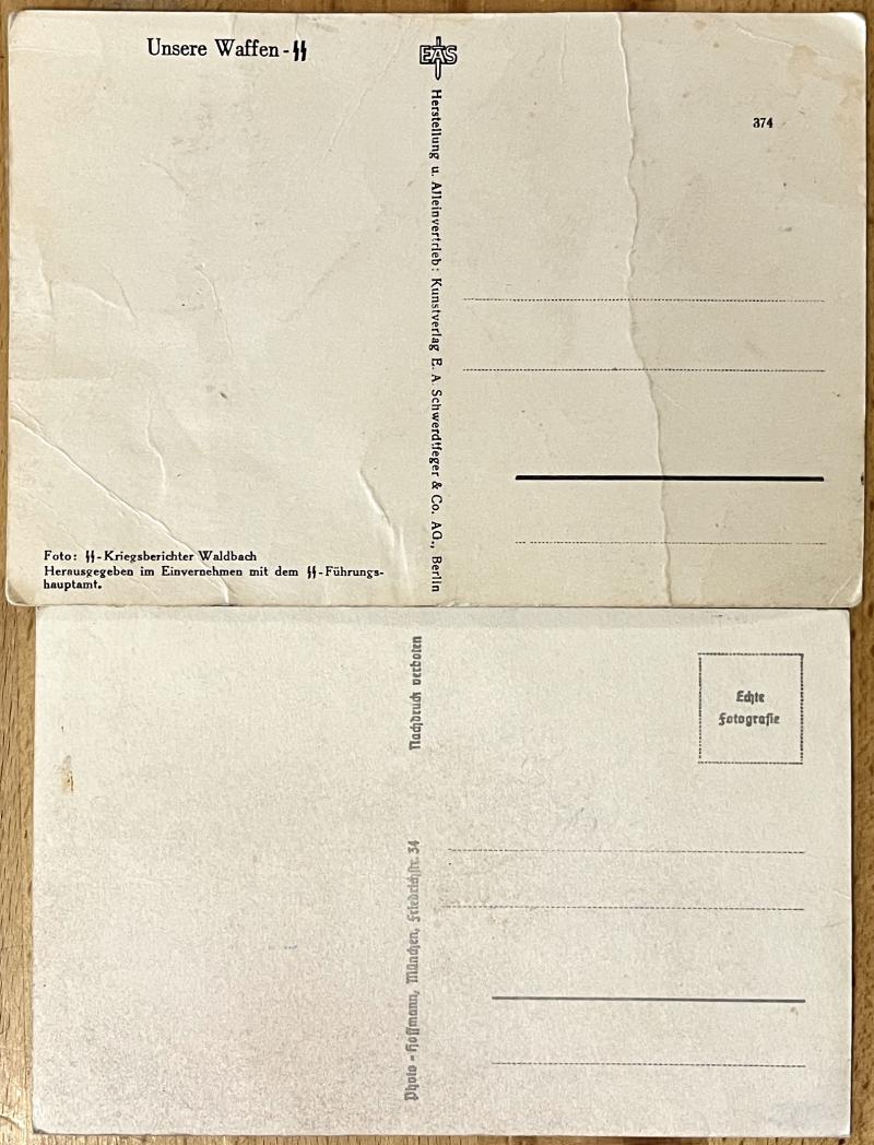 2 X GERMAN WW2 SS POSTCARDS - UNSERE WAFFEN SS & EINSATZ GRUPPEN