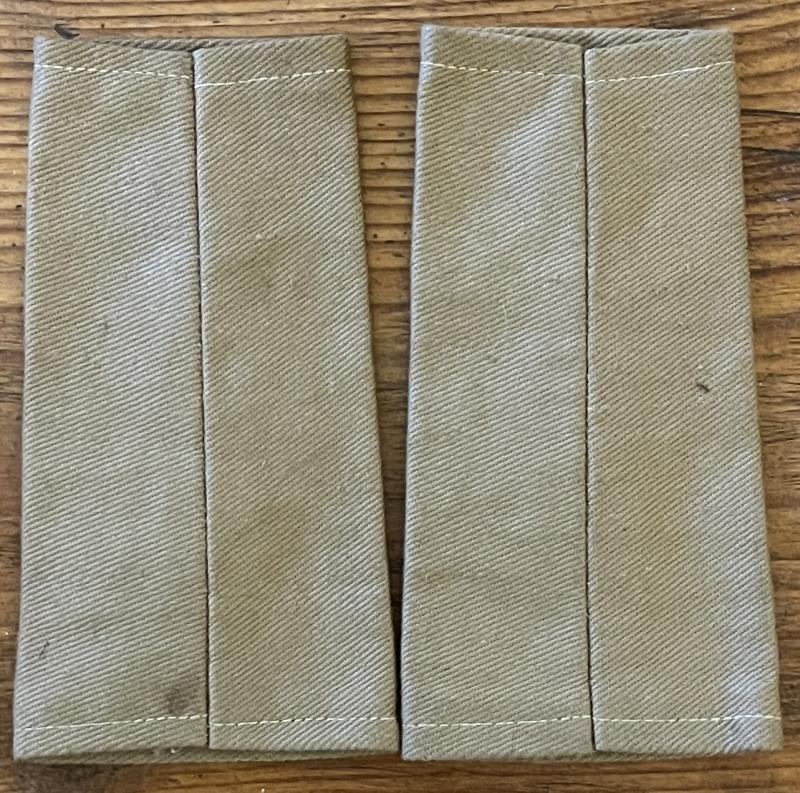 K.D. tan rank slides as issued in North Africa , Middle and Far East. Rank of Captain with 3 pips. V.G.C.