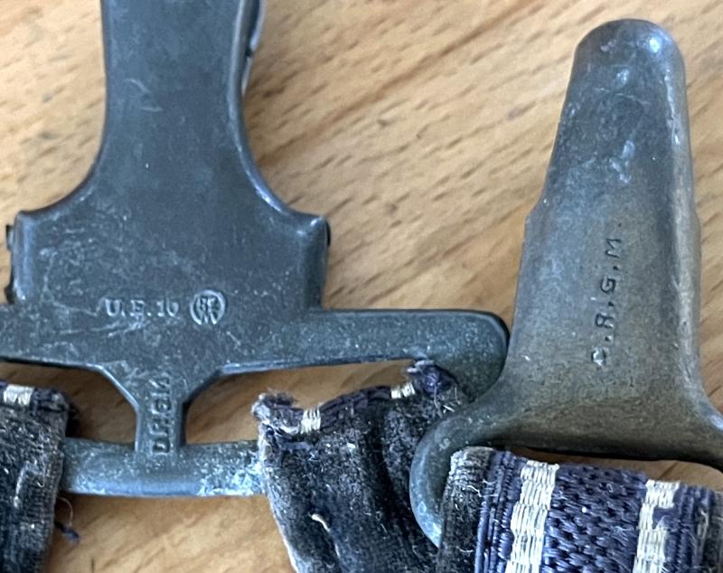The top clip is marked “U.E.10” and “RZM,” while the bottom clips are both marked “D.R.G.M.”.