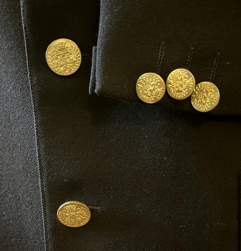 C/w , flat gilded brass Regimental buttons to front and cuffs and an exquisite bullion wire embroidered blazer badge to the chest pocket.