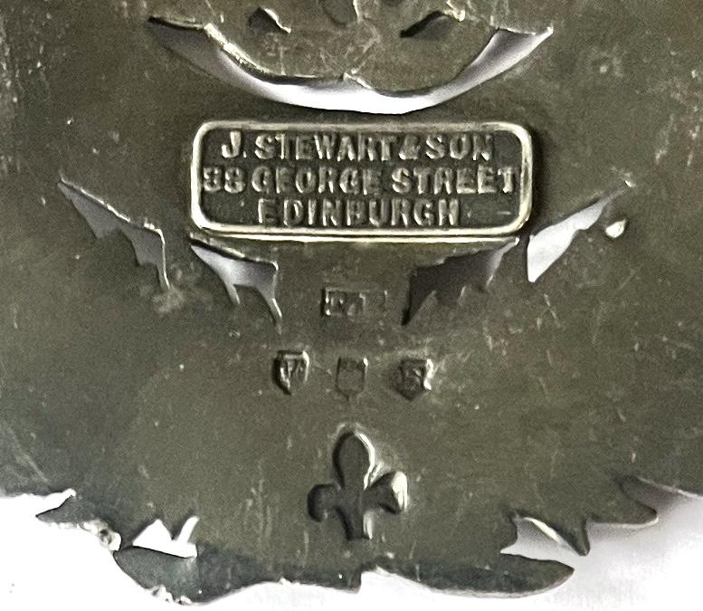 Raised jewellers tablet to the back with , "J. Stewart & Son - 88 George St. - Edinburgh"