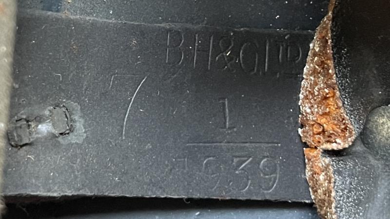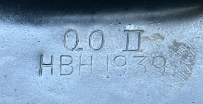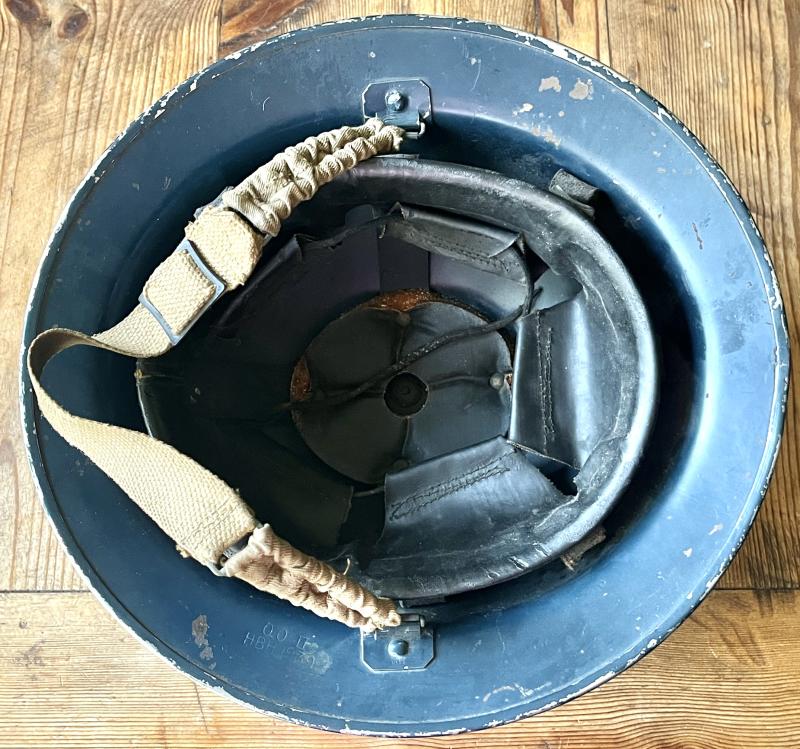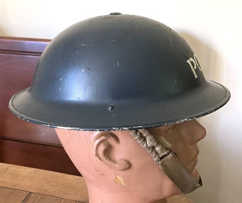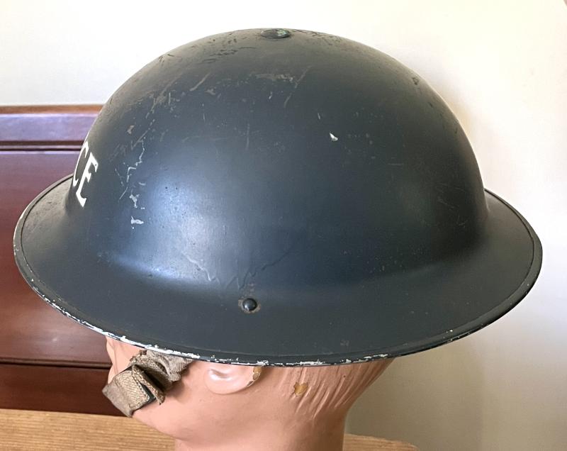 Nice untouched original. Very clean. No rust. Maker mkd. and 1939 dtd. Shiny blue paint . Good white stencilled " POLICE " to front. Liner and chin strap both spot on. V.G.C.