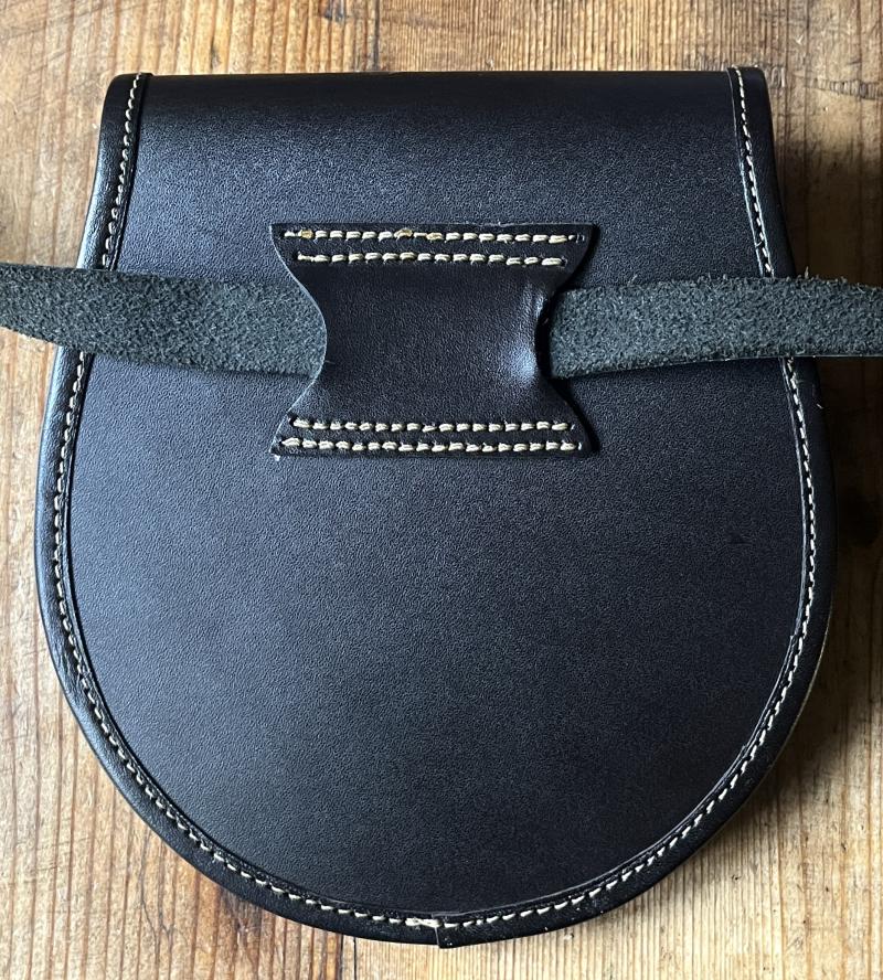 Mint condition and very rare army issue leather day sporran as worn by the Royal Signals Rgt. Pipes & Drums.