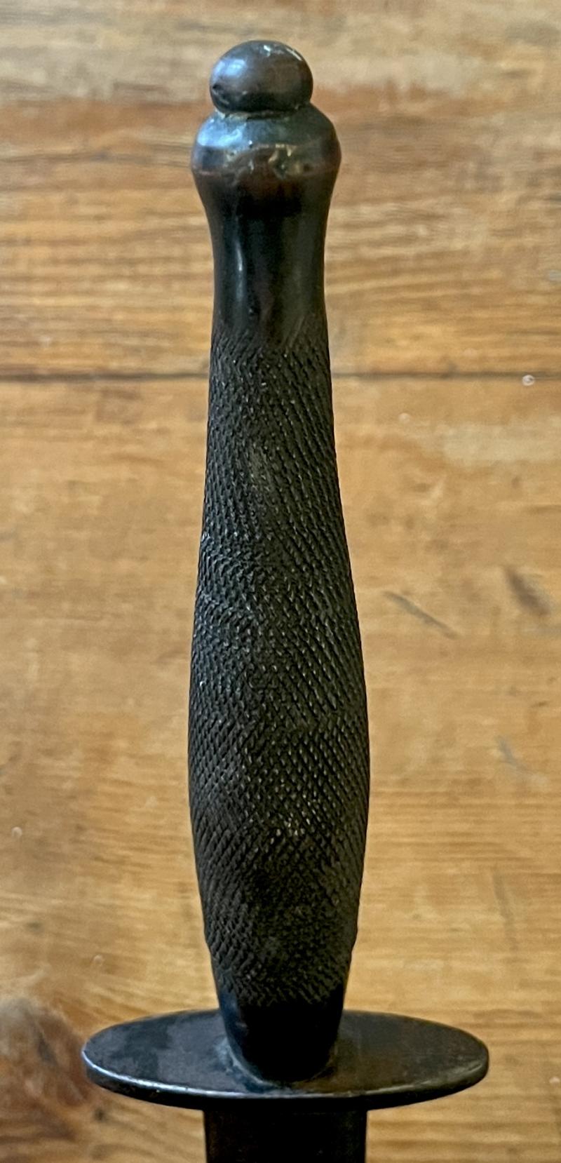 Leather scabbard is good but has had the top part removed which is not unusual.