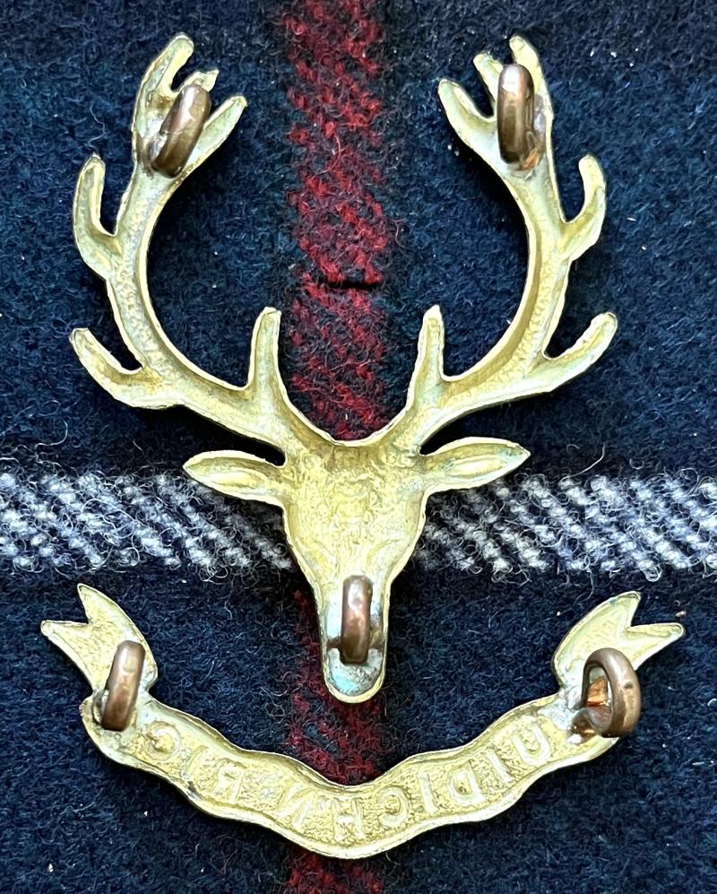 2 piece gilded sporran badge ( usually in w/m ). Sharp detail, no loss of finish and nice match between the 2 parts. Rare V.G.C. Tartan patch is not included.